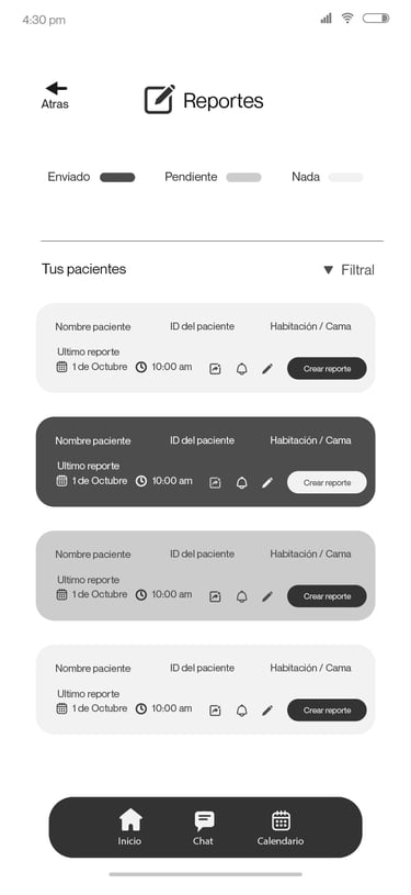 The variations of the main screen wireframe focused on optimizing the user experience by making it easier to view tasks, reports, and medical records in a clear and efficient way.