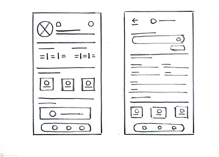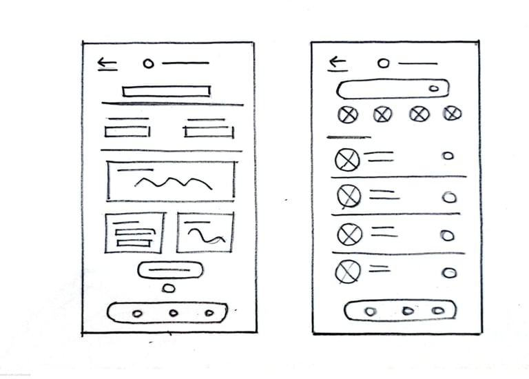 I created paper sketches for each of the main screens of the application, taking into account the pain points identified in relation to navigation and quick access to patient information.