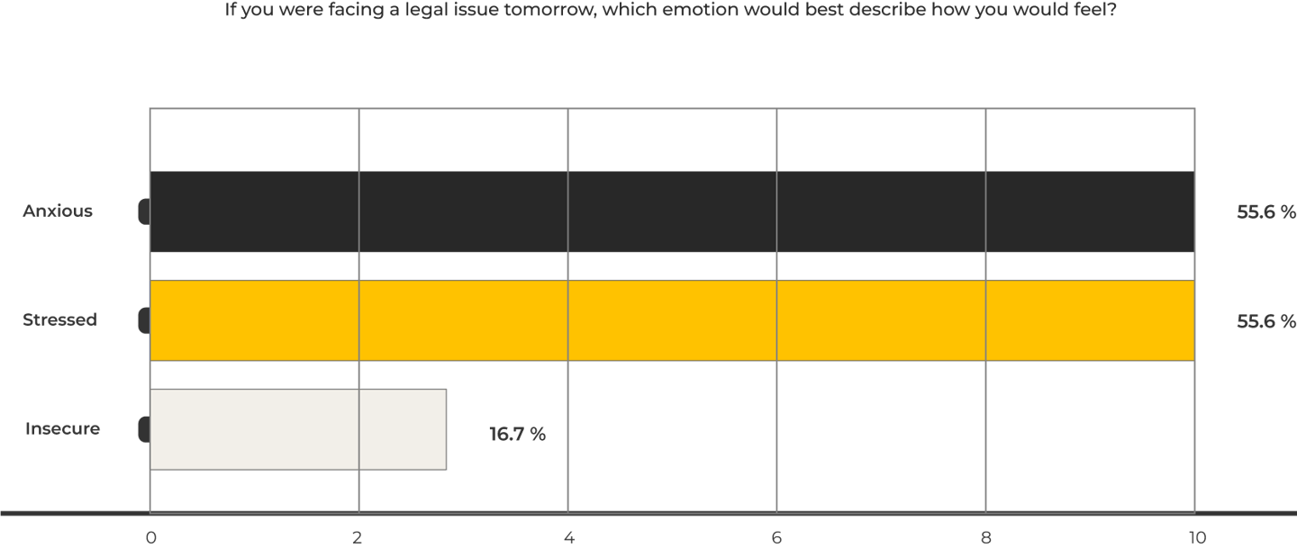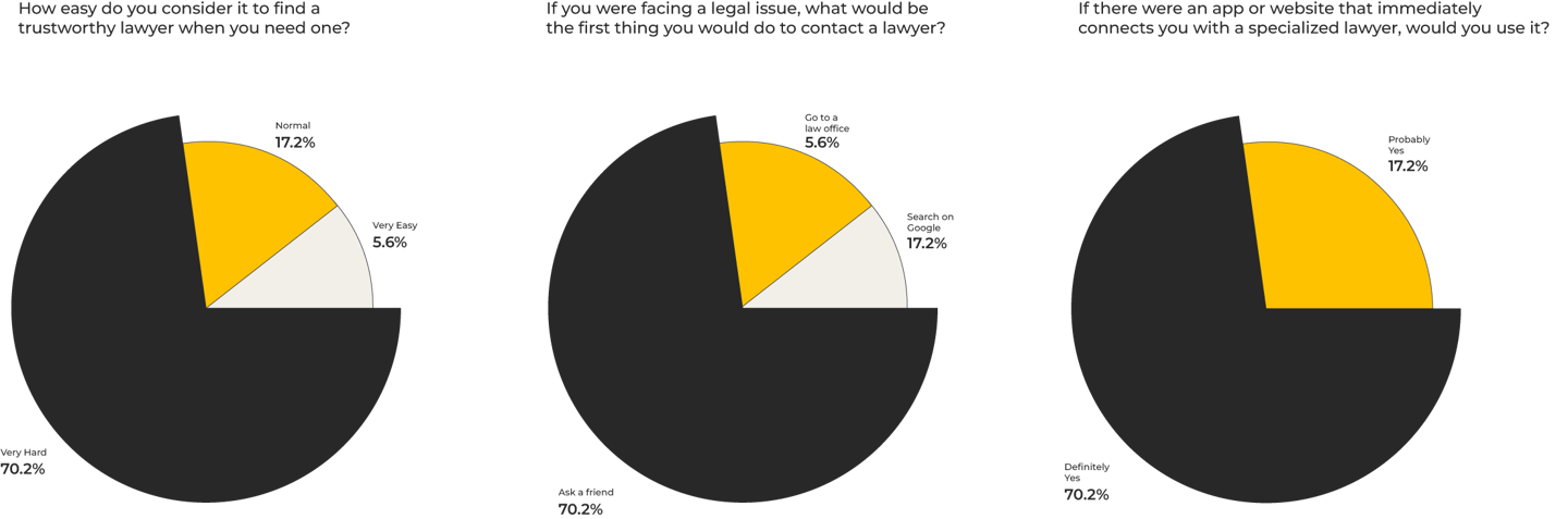 As part of the research process, a survey was conducted targeting middle-class individuals in order to understand how they react and what actions they take when facing an unexpected legal situation.