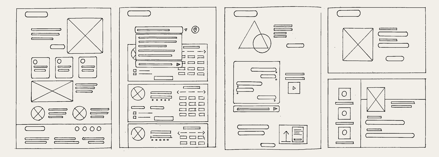 Se realizaron bocetos en papel de las pantallas principales del sitio web, teniendo en cuenta los puntos débiles identificados, especialmente en temas de accesibilidad y visualización de la información.