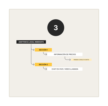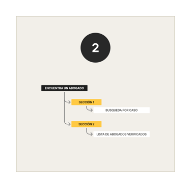 Posteriormente, la estructura alámbrica de estas pantallas se enfocó en optimizar la experiencia del usuario, facilitando el acceso a la visualización de abogados y a la asesoría inmediata de forma clara y eficiente, reduciendo trámites innecesarios y evitando pasos tediosos que pudieran generar estrés.
