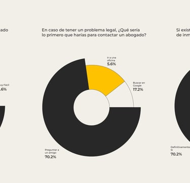 Los resultados demuestran que las personas de clase media perciben los procesos legales como algo complejo y estresante, y que confían más en la recomendación de terceros que en la búsqueda digital. Sin embargo, muestran una gran disposición a usar una plataforma tecnológica, siempre que esta transmita confianza, rapidez y acompañamiento humano.