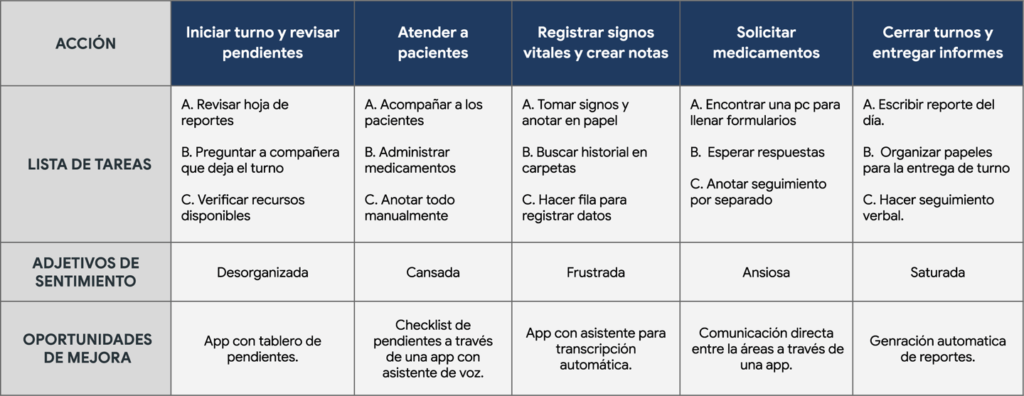 *Realicé entrevistas con personal médico y de enfermería*, que luego transformé en mapas de empatía para comprender mejor a los usuarios y sus necesidades dentro del entorno hospitalario.